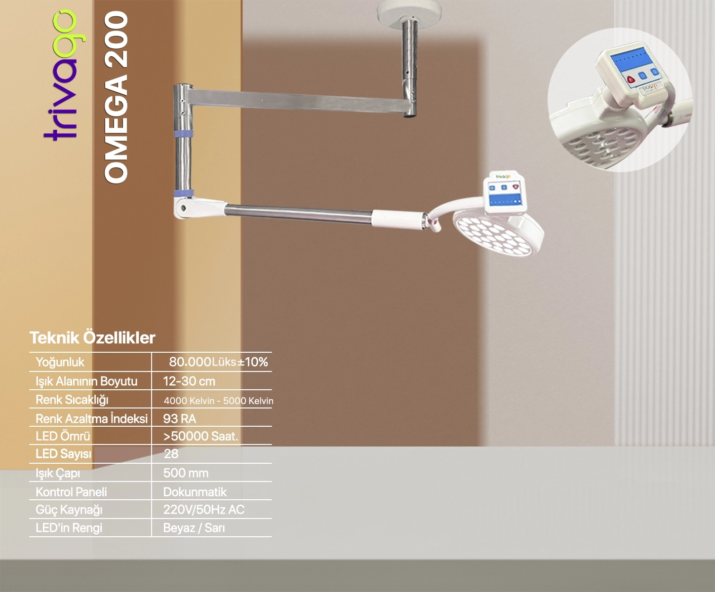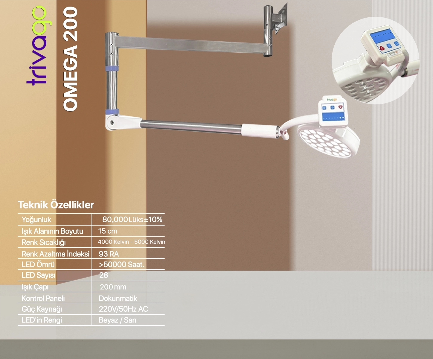 Omega 200 Duvara Monte Ameliyat Lambası