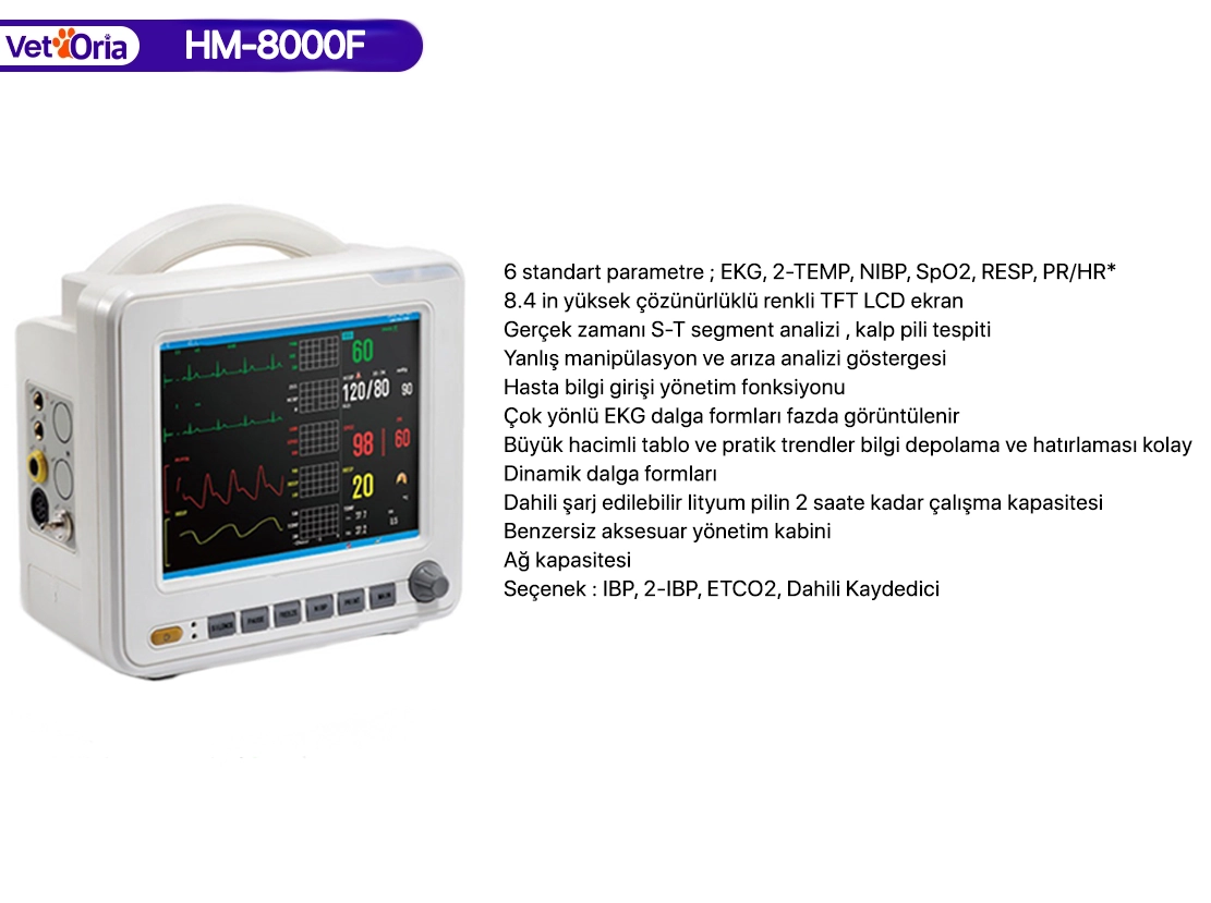 HM-8000F ETCO2'li Veteriner Hastabaşı Monitörü