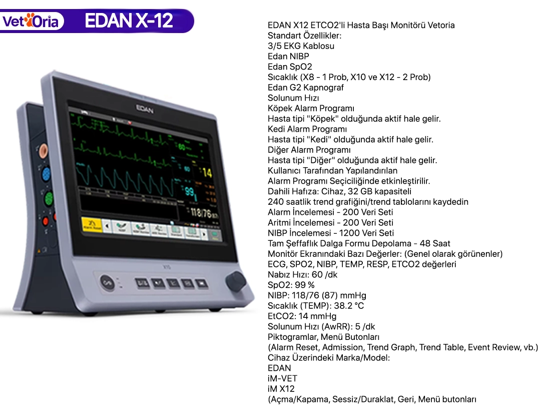 Edan X12 ETCO2'li Veteriner Hastabaşı Monitörü